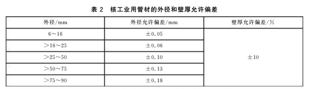 3.3.1 Zr-0、Zr-2和Zr-4管材的外徑和壁厚允許偏差應(yīng)符合表2的規(guī)定。對(duì)于Zr-1、Zr-3和Zr-5管材,熱交換器用管材的外徑和壁厚允許偏差應(yīng)符合表3的規(guī)定,一般工業(yè)管道用管材的外徑和壁厚允許偏差應(yīng)符合表4的規(guī)定。