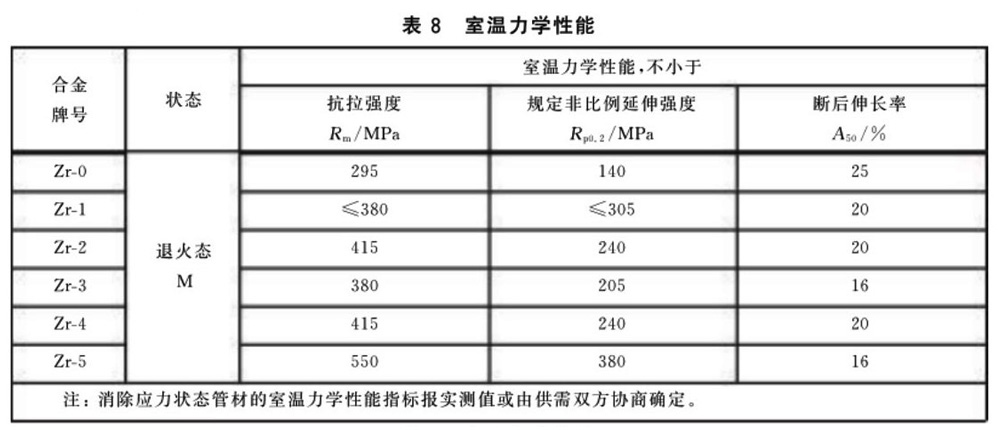 3.4.1 管材的室溫力學(xué)性能應(yīng)符合表8的規(guī)定。